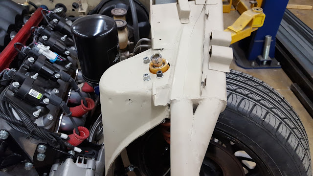The knuckles were shortened to the extreme, basically as much as they could be. I also reinstalled the rack spacers, however I shaved each of them down to .080" thick, from their original .145" to create the perfect stopping point.